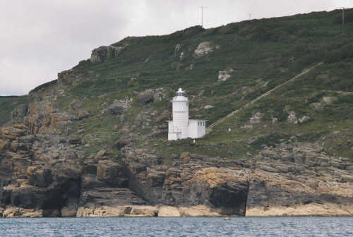 Tatter-du light house is just East of the the Bucks and about a mile east of Lamorna cove. The whole area is rocky and can be made into a gentle drift (for the suitably qualified and experienced) but can be quite kelpy during the summer. One particularly nice spot lies just in front of the light house. Head into the light from the south ..... to 50 03.084N 005 34.590W taking care to avoid the Bucks just to the east. Use your sounder to find a flat area about 30m wide at about 20-25m surrounded on three sides by steeply shelving rock. Drop about 10m and then heading south down the the rock face will